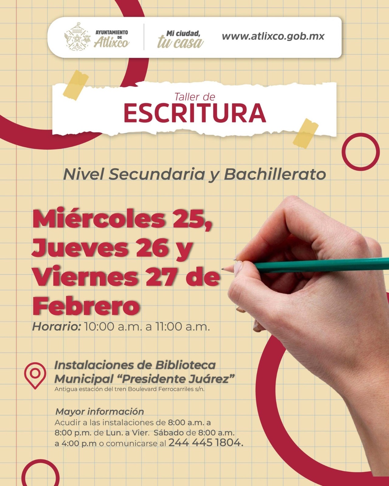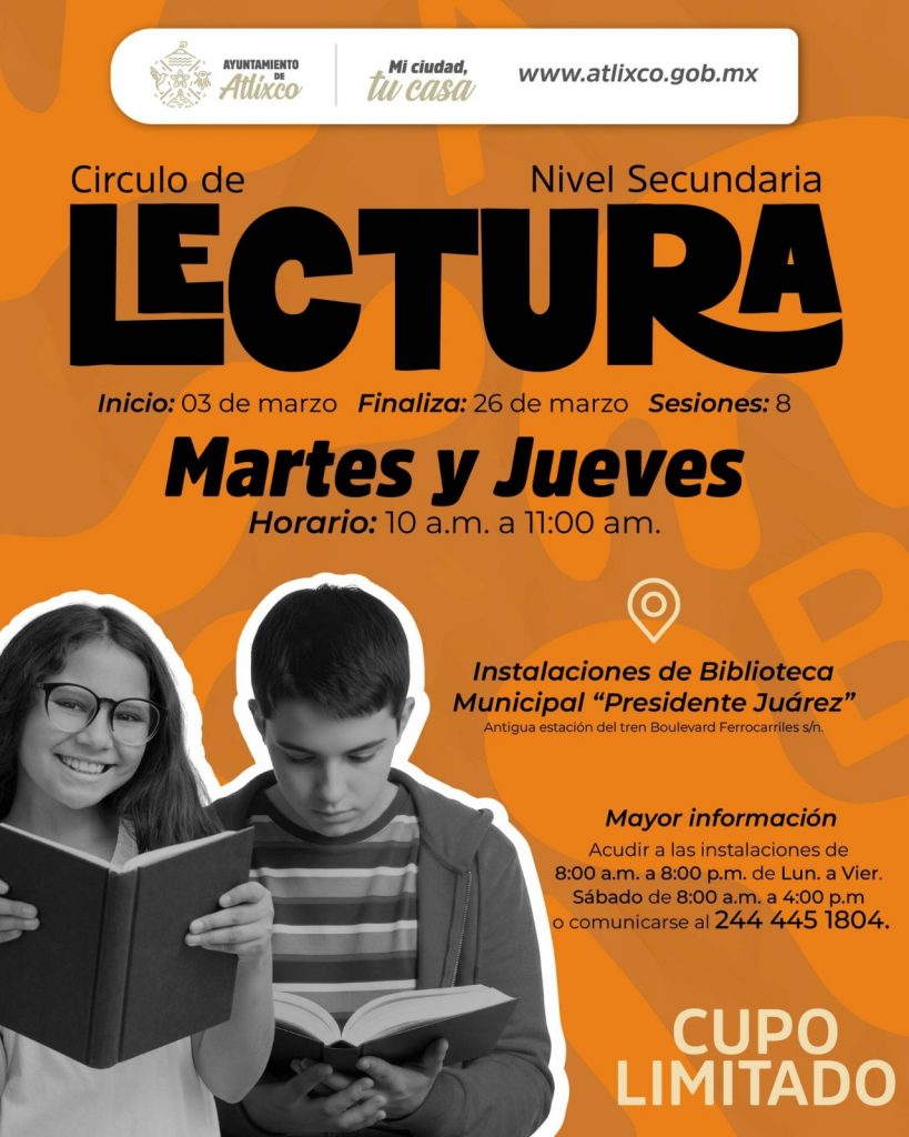El cupo es limitado para mayores informes, las personas interesadas pueden acudir directamente a la biblioteca o comunicarse al 244 445 1804.