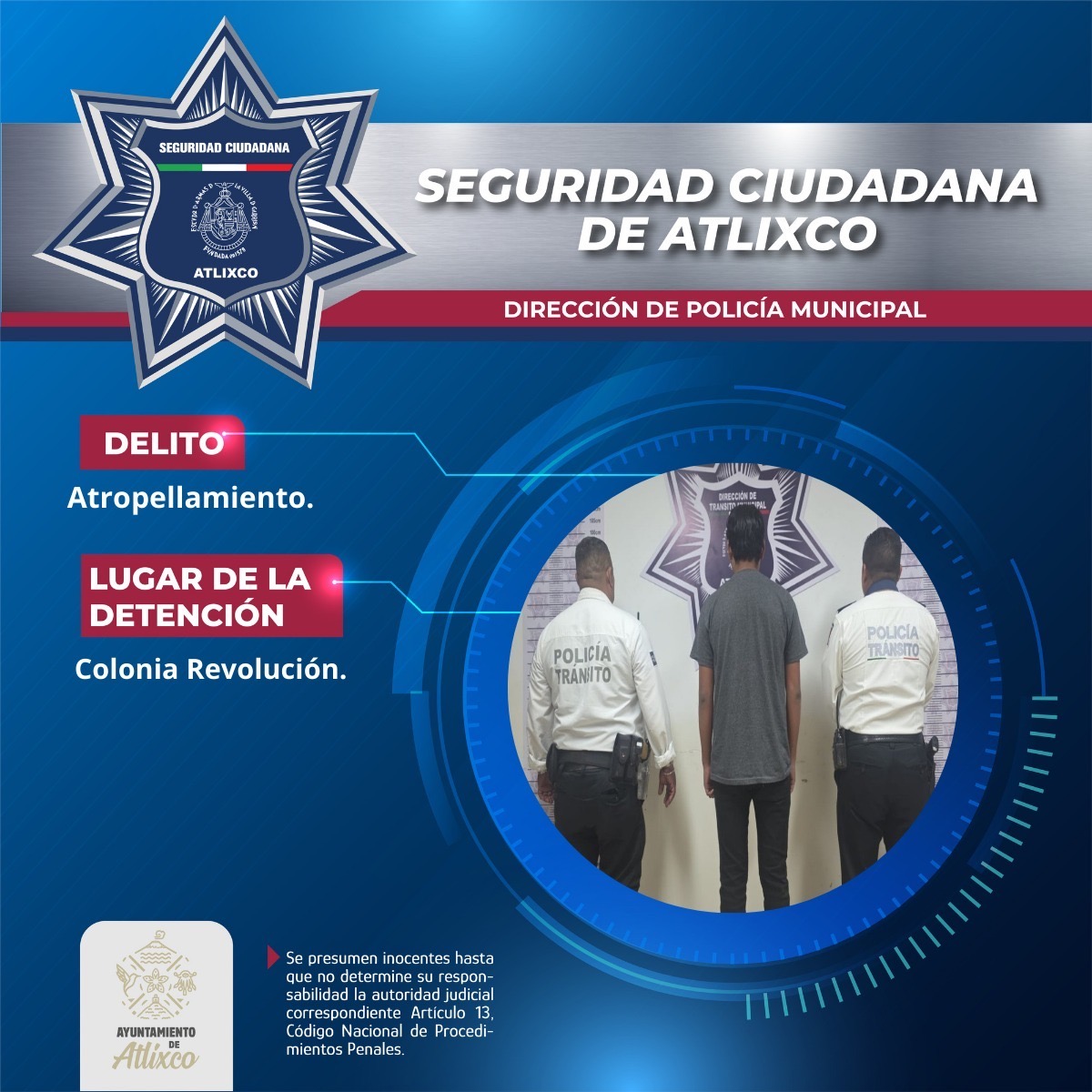 Elementos de la Policía de Atlixco atendieron un hecho de tránsito con una persona lesionada ocurrido en la calle Aquiles Serdán, colonia Revolución, tras ser alertados durante un recorrido de vigilancia.